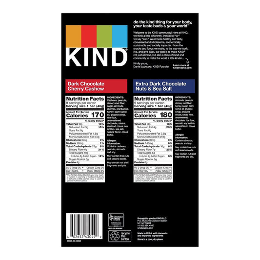 KIND Dark Chocolate Variety Pack, Cherry Cashew & Nuts & Sea Salt, 18 Count